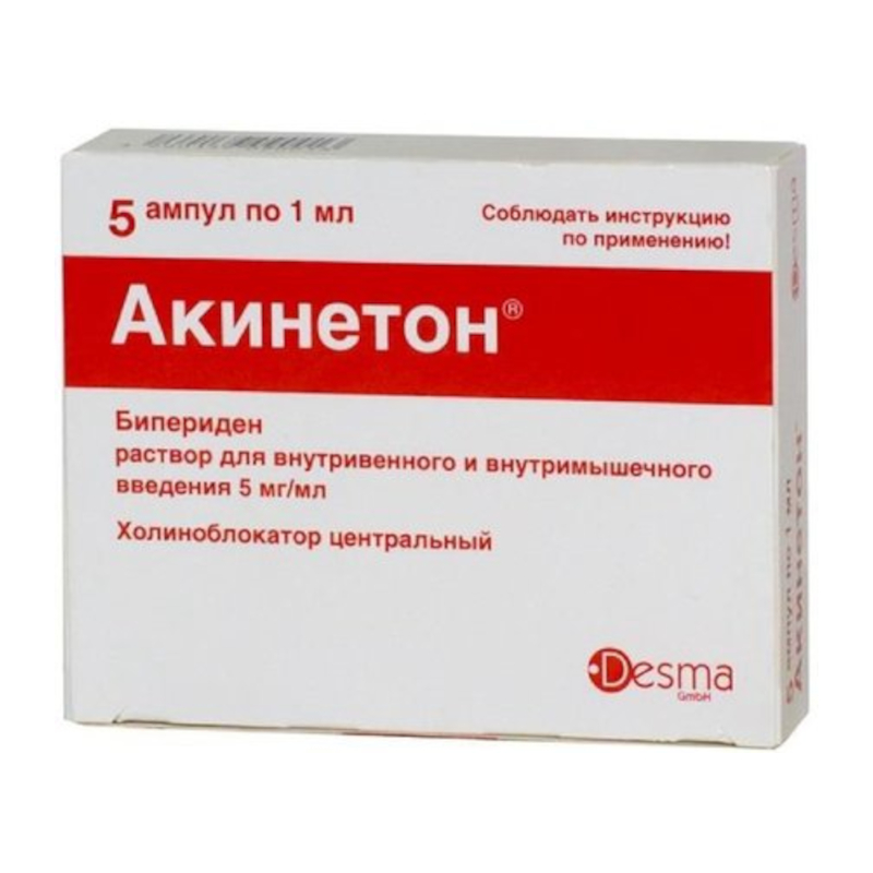 Акинетон 5 мг/мл раствор для внутривенного и внутримышечного введения 1 мл 5 шт