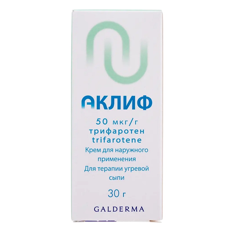 Абсорбцию трифаротена из состава крема Аклиф оценивали у взрослых и детей (10-17 лет), с акне. Участникам в течение 30 дней 1 раз в день назначали крем Аклиф по 2 грамма в день, нанося его на лицо, надплечья, грудь и верхнюю часть спины.
