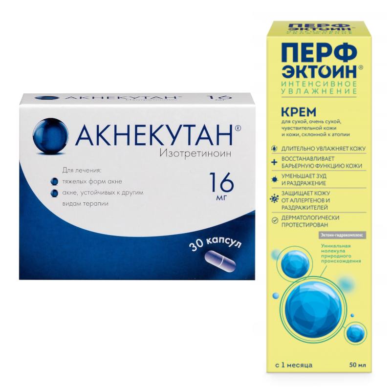 Набор Акнекутан 16 мг капсулы 30 шт + Перфэктоин крем для наружного применения 30 мл