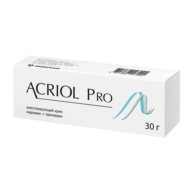 Наружно, на кожу или слизистую оболочку. Поверхностная анестезия интактной кожи. При введении иглы, например, при катетеризации сосудов при взятии проб крови Половина 5 г тюбика (примерно 2 г) на 10 см2 нанести толстым слоем на кожу и покрыть окклюзионной повязкой 1 час, максимум 5 часов. При небольших хирургических манипуляциях, например, при выскабливании контагиозного моллюска, удалении бородавок, небольших косметологических процедурах и эпиляции 1,5-2 г/10 см2 нанести толстым слоем на кожу 1 час, максимум 5 часов. На большие площади свежевыбритой кожи (в амбулаторных условиях), в т.ч. перед эпиляцией Максимальная рекомендуемая доза 60 г, максимально рекомендуемая площадь аппликации 600 см2; нанести толстым слоем на кожу и покрыть окклюзионной повязкой 1 час, максимум 5 часов. При поверхностных процедурах на больших площадях (в стационарных условиях), например, взятие кожи методом расщепленного лоскута 1,5-2 г/10 см2 нанести толстым слоем на кожу и покрыть окклюзионной повязкой 2 часа, максимум 5 часов. Поверхностная анестезия трофических язв нижних конечностей При хирургической обработке (механической очистке) трофических язв нижних конечностей: разовая доза около 1-2 г/10 см2; нанести крем толстым слоем на язвенную поверхность, не более 10 г крема за процедуру. Наложить окклюзионную повязку. Время аппликации: минимум 30 мин. Вскрытая туба с кремом предназначена для однократного использования, тубу с остатками крема следует выбрасывать после использования у одного пациента. В случае обработки язв, в ткани которых проникновение препарата затруднено, продолжительность аппликации можно увеличить до 60 мин. Механическую очистку необходимо начинать не позднее 10 мин после удаления крема. При манипуляциях на язвах нижних конечностей препарат применяли до 15 раз в течение 1-2 месяцев без снижения эффективности и повышения частоты развития местных реакций. Поверхностная анестезия половых органов Кожа половых органов: Обезболивание перед инъекциями местных анестетиков: Мужчины: 1 г/10 см2. Нанести крем толстым слоем на кожу. Время аппликации: 15 мин. Женщины: 1-2 г/10 см2. Нанести крем толстым слоем на кожу. Время аппликации: 60 мин. Поверхностная анестезия слизистой оболочки половых органов: При удалении кондилом и для обезболивания перед инъекциями местных анестетиков: примерно 5-10 г крема, в зависимости от площади обрабатываемой поверхности. Крем следует наносить на всю поверхность слизистой оболочки, включая складки слизистой оболочки. Окклюзионной повязки не требуется. Время аппликации: 5-10 мин. Проводить процедуру сразу же после удаления крема. Дети Обезболивание при введении иглы (в т.ч. при вакцинации), при выскабливании контагиозного моллюска и при других небольших поверхностных хирургических манипуляциях. Нанести крем толстым слоем на кожу и покрыть окклюзионной повязкой. Доза должна соответствовать обрабатываемой поверхности и не должна превышать 1 г крема на 10 см2. 0-3 мес Максимально 10 см2 (суммарно 1 г крема) (максимальная суточная доза) 1 час (важно: не более 1 часа) 3-12 мес Максимально 20 см2 (суммарно 2 г крема) 1 час 1-6 лет Максимально 100 см2 (суммарно 10 г крема) 1 час, максимально 4 часа 6-12 лет Максимально 200 см2 (суммарно 20 г крема) 1 час, максимально 4 часа Полоска препарата Акриол Про длиной 3,5 см примерно соответствует дозе 1 г. Увеличение времени аппли