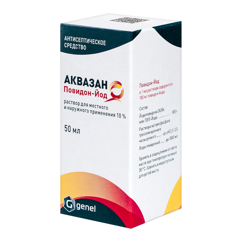 Аквазан Повидон-Йод 10% раствор для местного и наружного применения 50 мл 1 шт