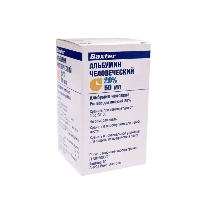 Инструкция по применению Альбумин человеческий 20% раствор для инфузий 50 мл