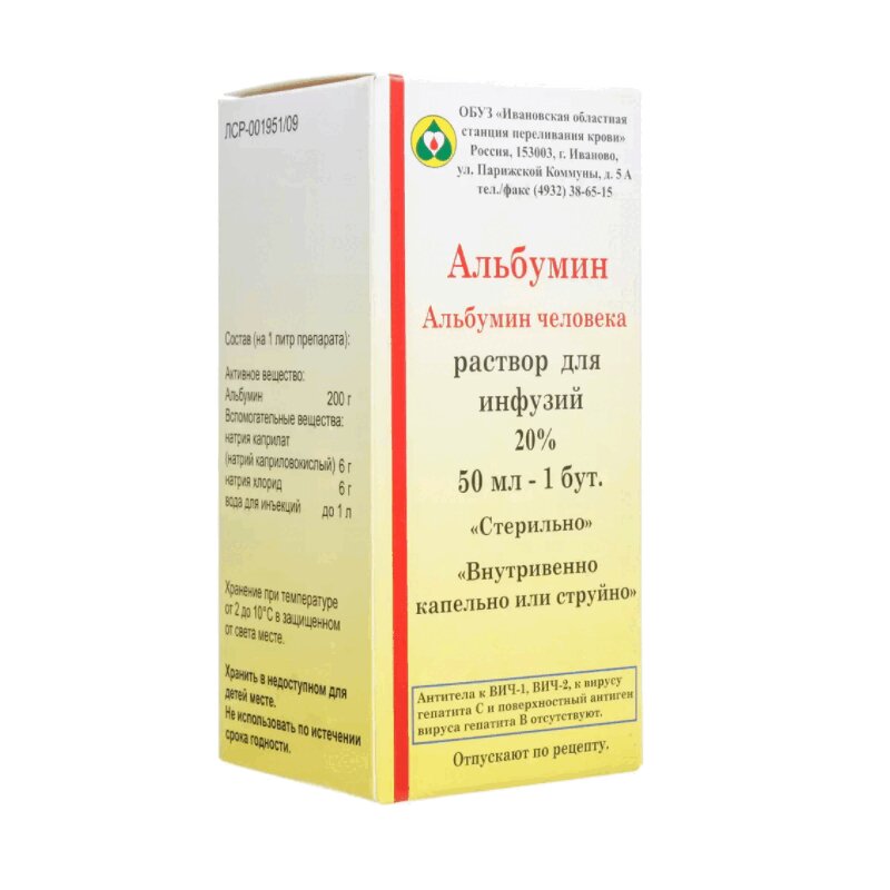 Инструкция по применению Альбумин раствор 20% фл.50 мл