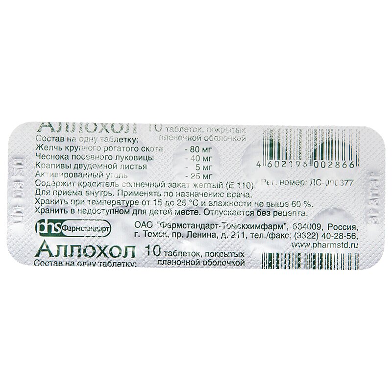 Аллохол таблетки покрытые пленочной оболочкой упаковка контурная 210 мг N10