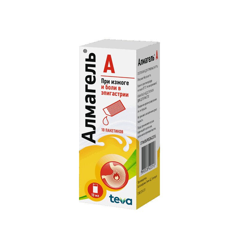 Инструкция по применению Алмагель А суспензия для приема внутрь 10 мл 10 шт