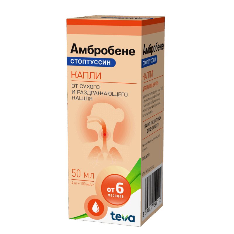 Амбробене Стоптуссин 4 мг/мл+100 мг/мл капли для приема внутрь 50 мл 1 шт