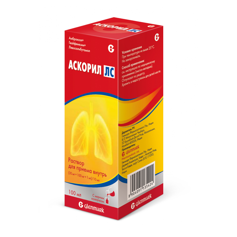 Вспомогательные вещества: бензойная кислота - 0.01 г, гиэтеллоза - 0.0075 г, сорбитол - 2.5 г, глицерол - 0.75 г, пропиленгликоль - 0.15 г, натрия сахаринат - 0.0015 г, ароматизатор малиновый - 0.0025 г, вода - до 5 мл.
