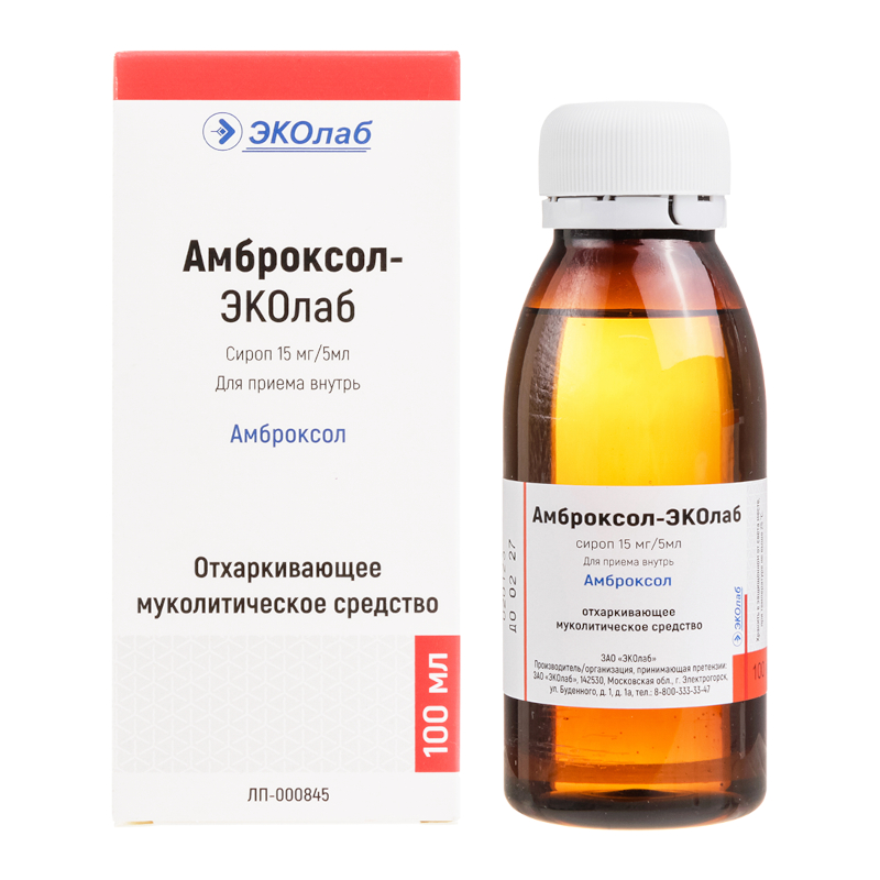 Инструкция по применению Амброксол-ЭКОлаб 15 мг/5 мл сироп 100 мл