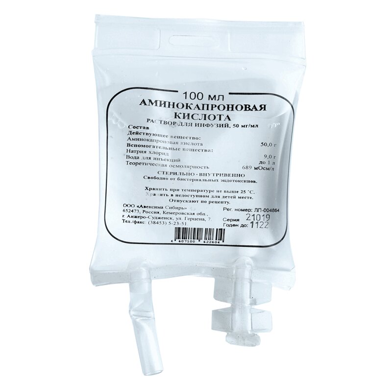 Аминокапроновая кислота 50 мг/мл раствор для инфузий 100 мл 1 шт