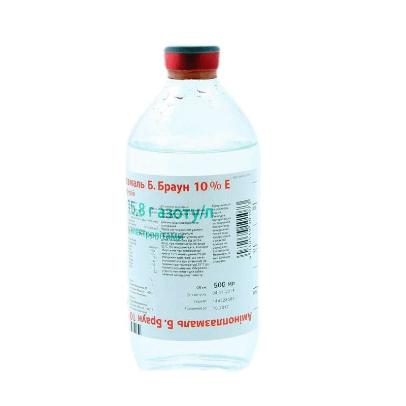 Таким образом, основное терапевтическое воздействие препарата Аминоплазмаль Е 15 заключается в снабжении организма субстратом синтеза белков при парентеральном питании.