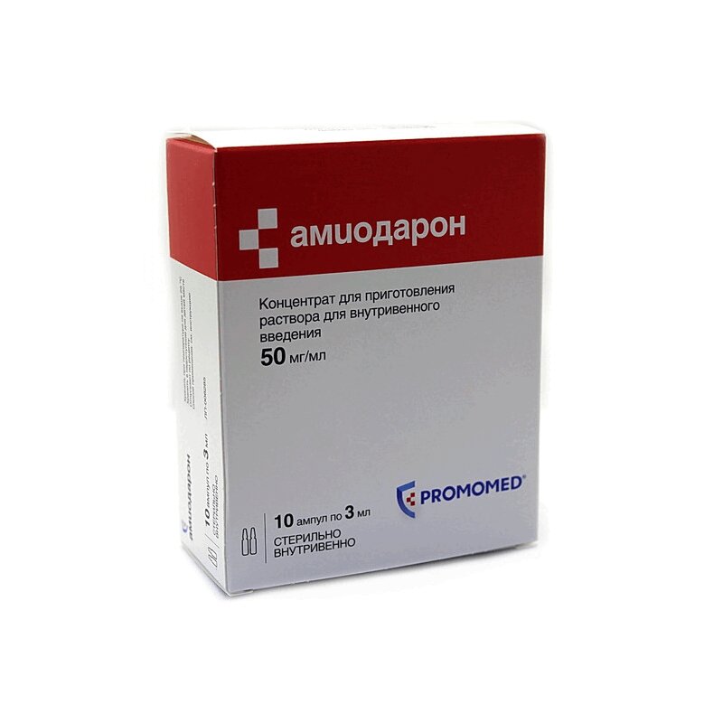 Амиодарон 50 мг/мл концентрат для приготовления раствора для внутривенного введения 3 мл 10 шт