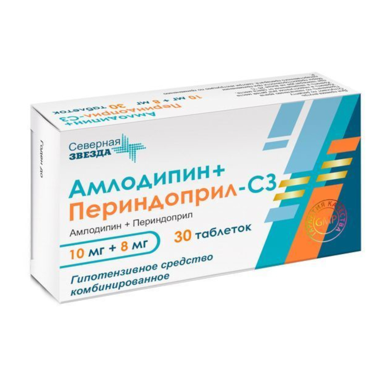 Инструкция по применению Амлодипин+Периндоприл-СЗ 10 мг+8 мг таблетки 30 шт