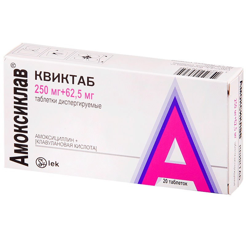 Амоксиклав Квиктаб 250 мг+62,5 мг таблетки диспергируемые 20 шт
