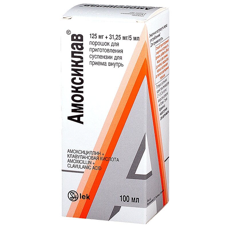 Амоксиклав порошок для приготовления суспензии для приема внутрь флакон темного стекла 125 мг+31,25 мг/5 мл фл.25 г с пипеткой