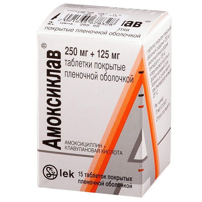 Амоксиклав таблетки покрытые пленочной оболочкой флакон темного стекла 250 мг+125 мг 15 шт