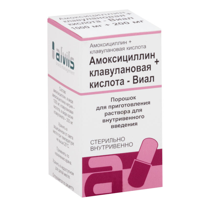 Амоксициллин+Клавулановая кислота-Виал 500 мг+100 мг порошок для приготовления раствора для внутривенного введения 1 шт