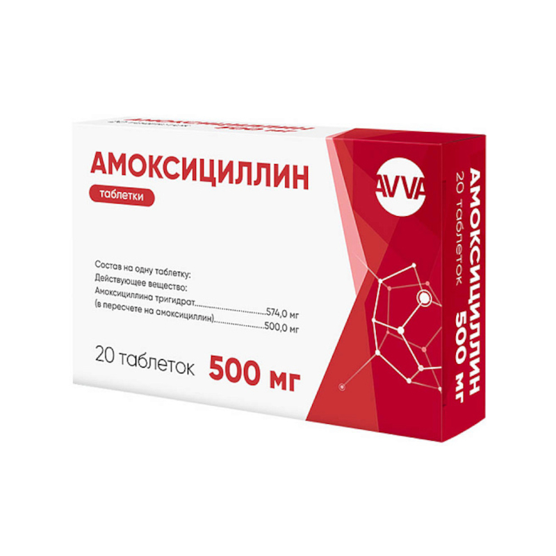 | амоксициллин (в форме тригидрата) | 500 мг |