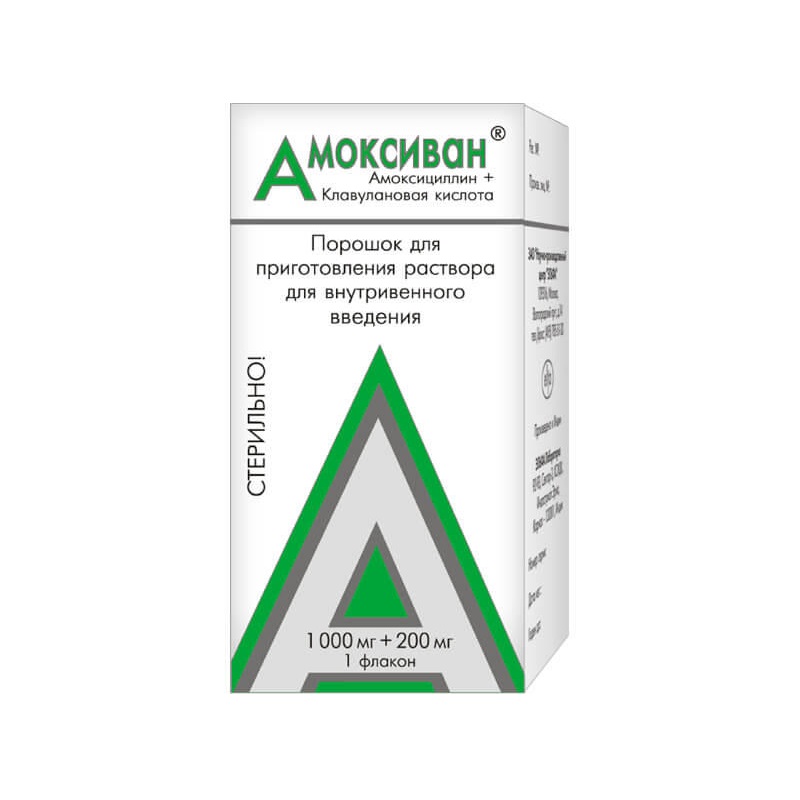 Амоксиван 1000 мг+200 мг порошок для приготовления раствора для внутривенного введения 1 шт