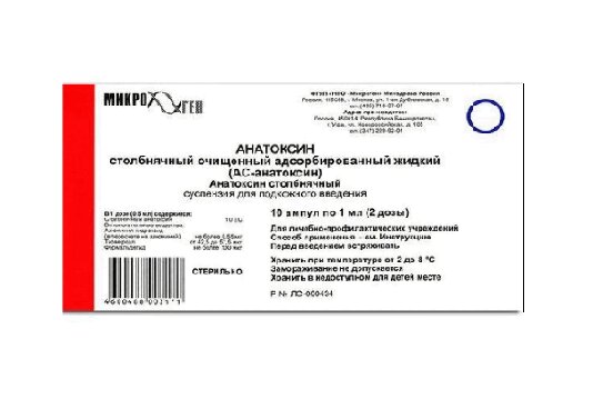 Инструкция по применению Анатоксин столб.очищ.адсорб.жидкий (АС-анатоксин) суспензия 1 мл амп.10 шт