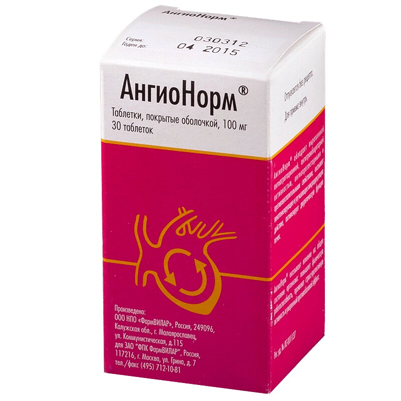 Инструкция по применению АнгиоНорм таблетки 100 мг 30 шт