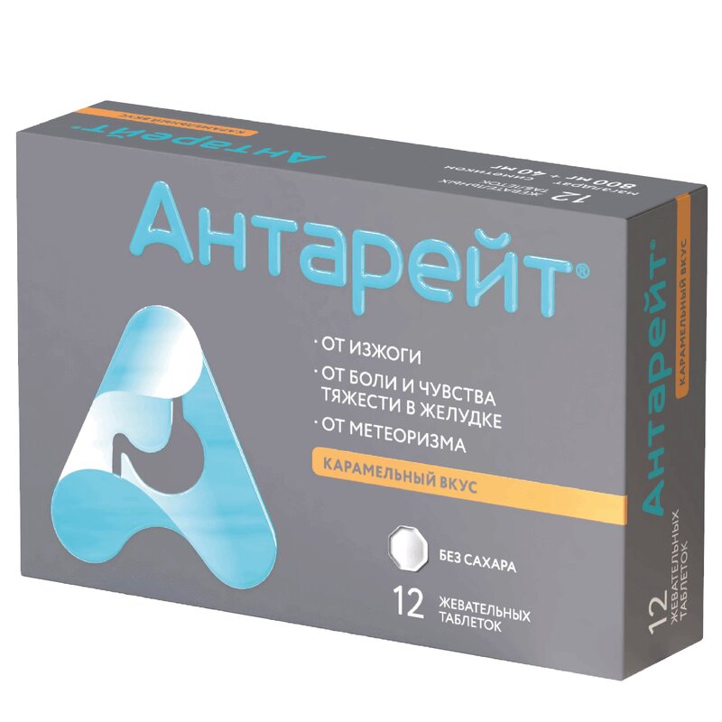 Антарейт таблетки жевательные блистер 800 мг/40 мг 12 шт