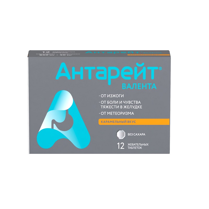 Антарейт Валента 800 мг+40 мг таблетки жевательные Карамель 12 шт