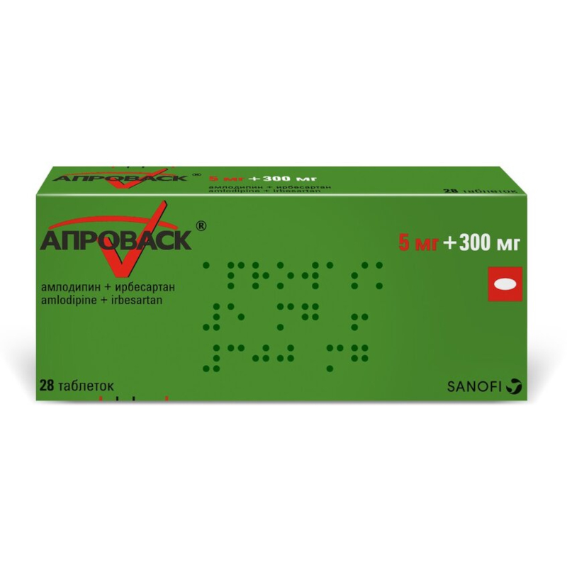 Фармакодинамические свойства каждого из действующих веществ, входящих в состав препарата Апроваск®, амлодипина и ирбесартана, способствуют их аддитивному антигипертензивному действию при применении в комбинации по сравнению с применением каждого из этих препаратов в отдельности. Как антагонисты рецепторов ангиотензина II (АРА II), так и блокаторы медленных кальциевых каналов (БМКК), снижают АД за счет снижения периферического сопротивления сосудов, однако блокада поступления кальция в клетку и уменьшение сосудосуживающего действия, обусловленного воздействием ангиотензина II, являются дополняющими друг друга механизмами.