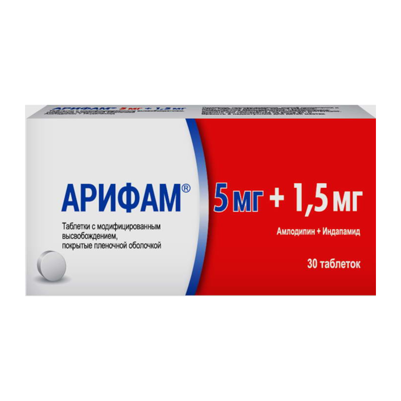 Арифам 5 мг+1,5 мг таблетки покрытые пленочной оболочкой с модифицированным высвобождением 30 шт
