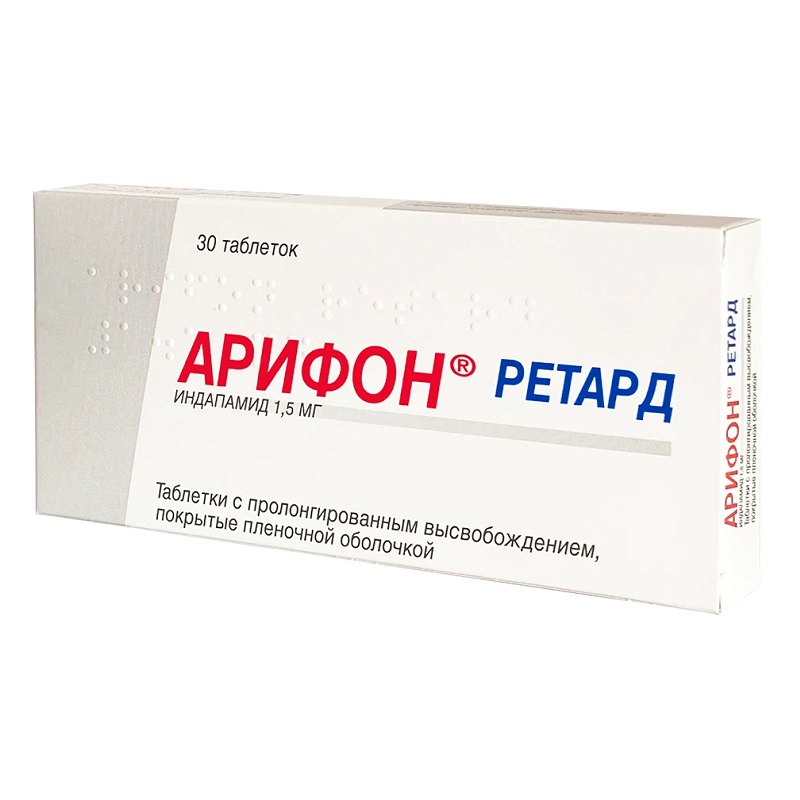 Инструкция по применению Арифон Ретард 1,5 мг таблетки с пролонгированным высвобождением 30 шт