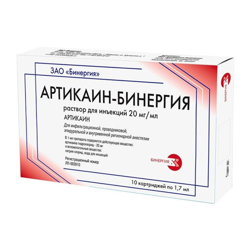 Артикаин-Бинергия 20 мг/мл раствор для инъекций картридж 1,7 мл 10 шт