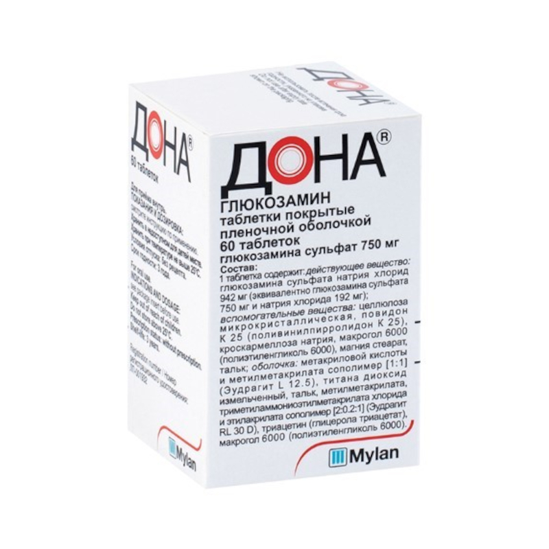 Глюкозамина сульфат калия хлорид, хондроитина сульфат натрия, премикс витаминно-минеральный (биотин, аскорбиновая кислота, селенит натрия, никотинамид, цинка сульфат, кальция D-пантотенат, токоферола ацетат, пиридоксина гидрохлорид, рибофлавин, тиамина моногидрат, фолиевая кислота, цианкобаламин), диоксид кремния аморфный и кальциевая или магниевая соль стеариновой кислоты (антислеживающие агенты).