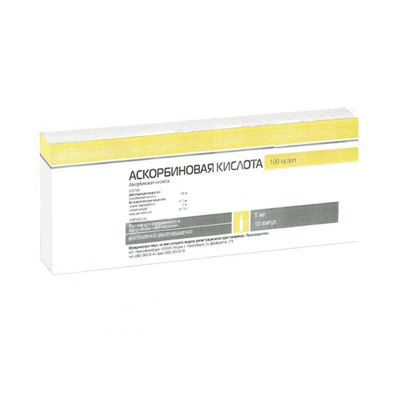 Аскорбиновая кислота 100 мг/мл раствор для внутривенного и внутримышечного введения 5 мл 10 шт Новосибхимфарм
