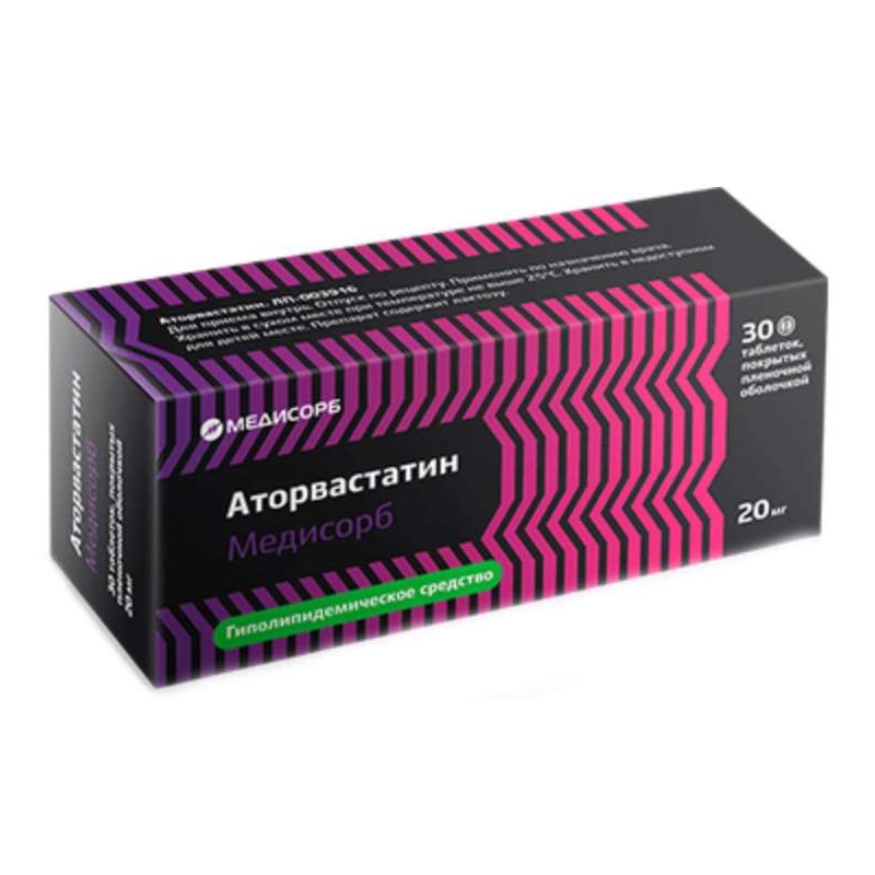 Аторвастатин Медисорб таблетки покрытые пленочной оболочкой упаковка контурная 20 мг 30 шт