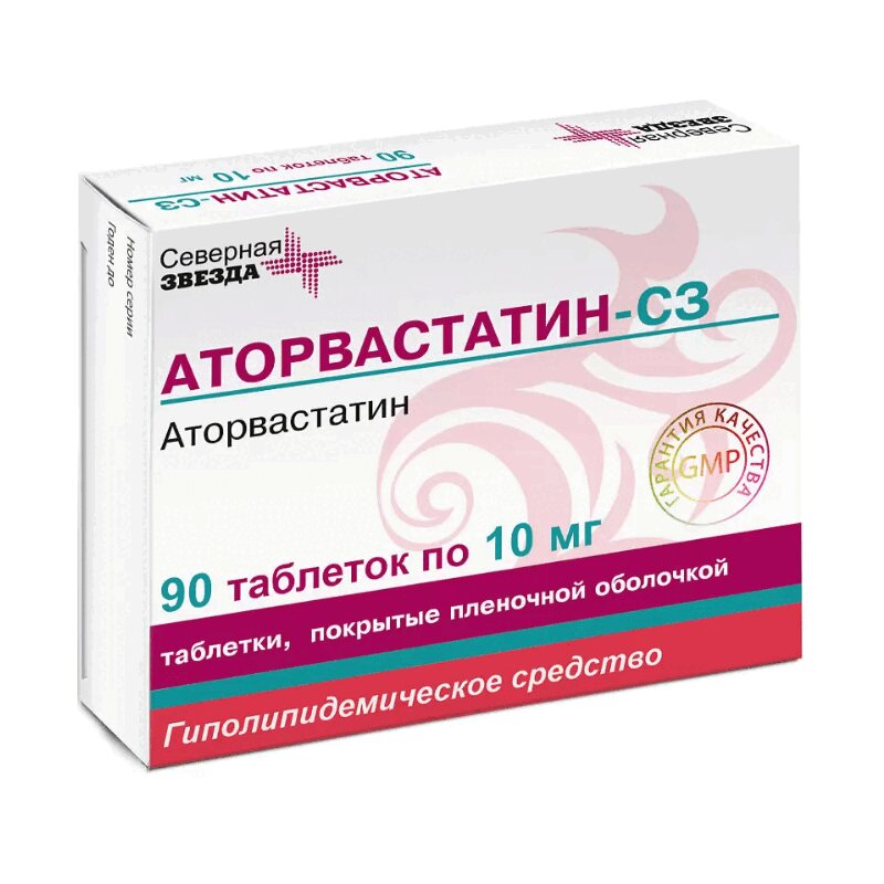 Аторвастатин-СЗ 10 мг таблетки покрытые пленочной оболочкой 90 шт