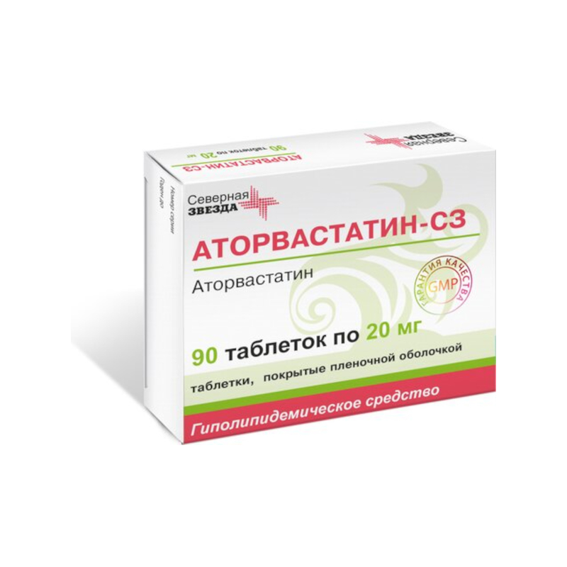 Аторвастатин-СЗ 20 мг таблетки покрытые пленочной оболочкой 90 шт