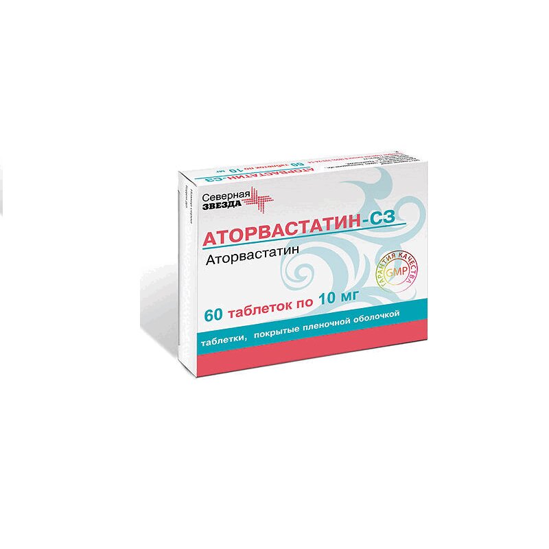 Аторвастатин-СЗ таблетки покрытые пленочной оболочкой упаковка контурная 10 мг 60 шт