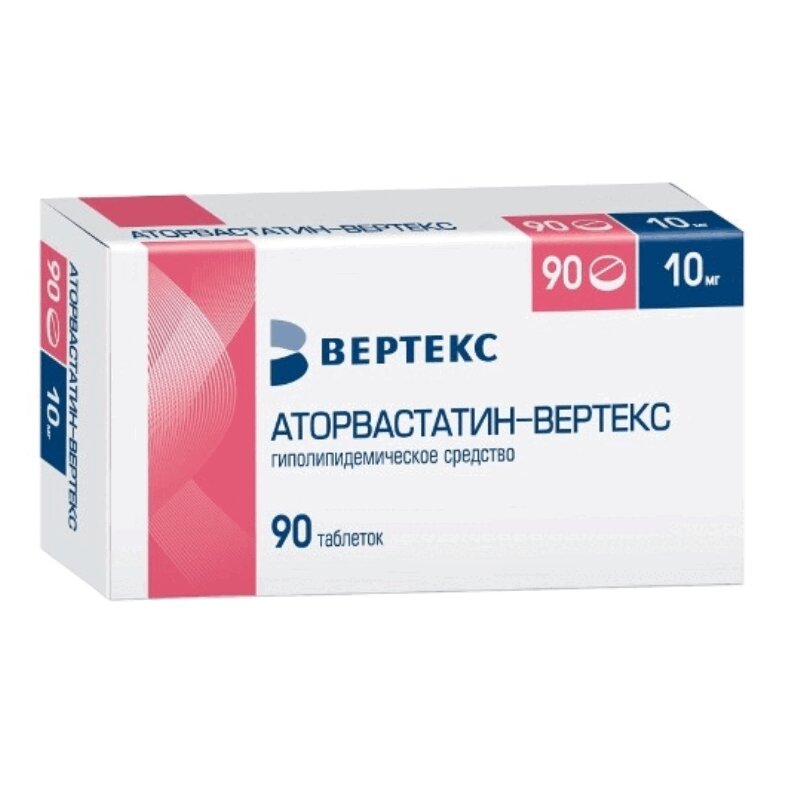 Аторвастатин-ВЕРТЕКС 10 мг таблетки покрытые пленочной оболочкой 90 шт