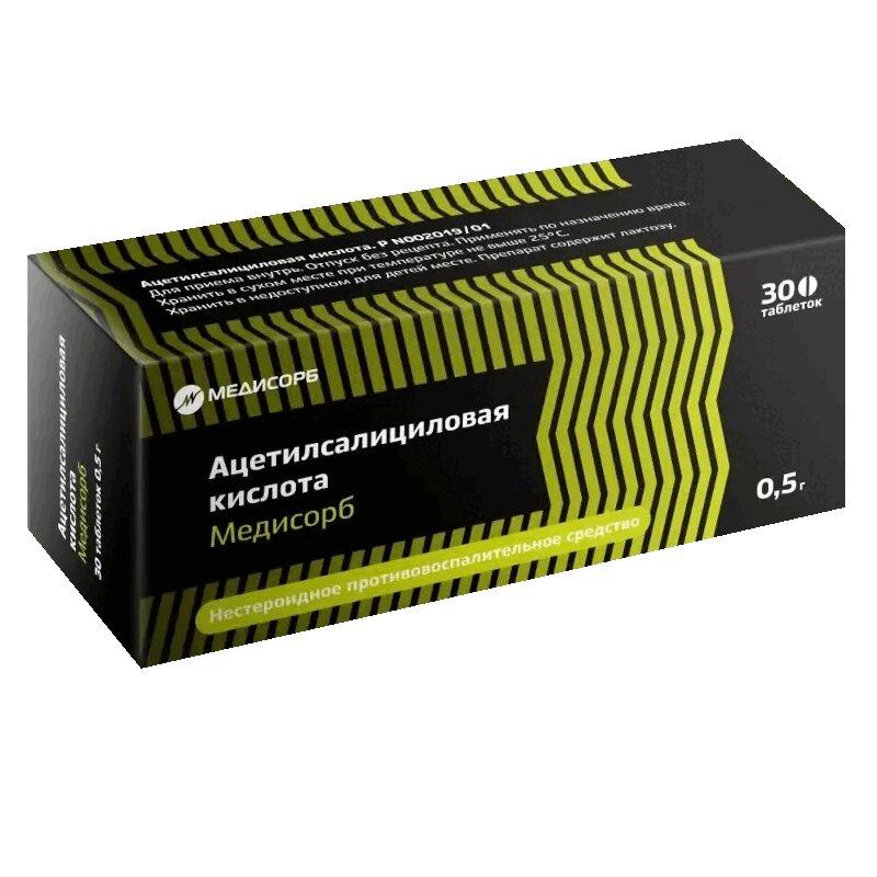Ацетилсалициловая кислота Медисорб 500 мг таблетки 30 шт