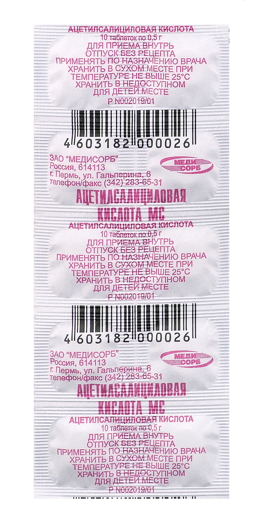| ацетилсалициловая кислота | 500 мг |