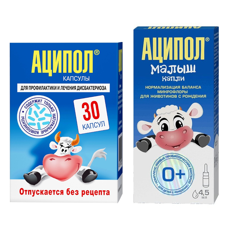 Набор Аципол капсулы 30 шт + Аципол Малыш капли для приема внутрь 4,5 мл