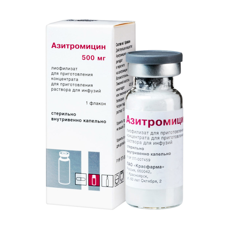 Азитромицин 500 мг лиофилизат для приготовления раствора для инфузий 1 шт