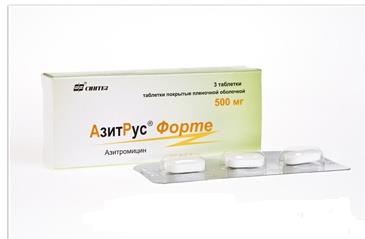 АзитРус форте таблетки покрытые пленочной оболочкой упаковка контурная ячейковая 500 мг 3 шт