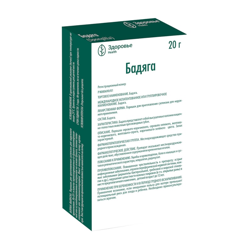 Бадяга порошок для приготовления суспензии для наружного применения 20 г 1 шт Здоровье Health
