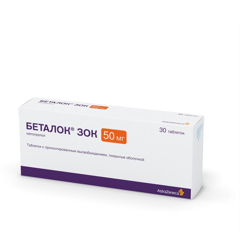 Беталок ЗОК 50 мг таблетки покрытые оболочкой с пролонгированным высвобождением 30 шт