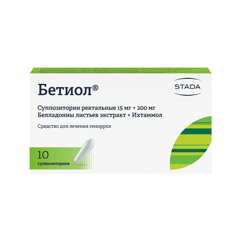 Бетиол 15 мг+200 мг суппозитории ректальные 10 шт