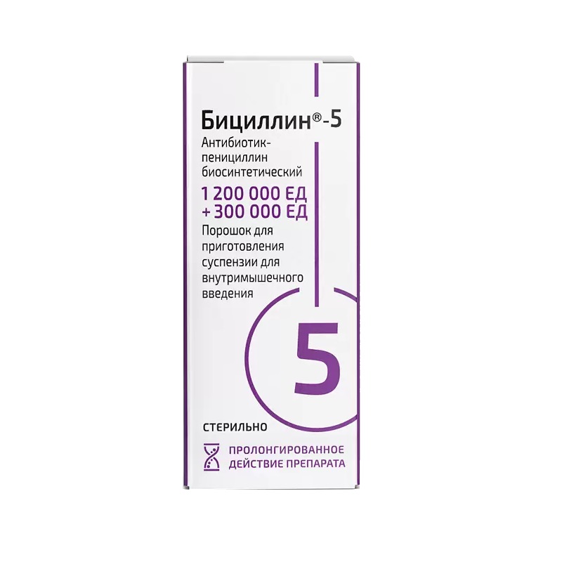 Бициллин-5 1500000 ЕД порошок для приготовления суспензии для внутримышечного введения 1 шт