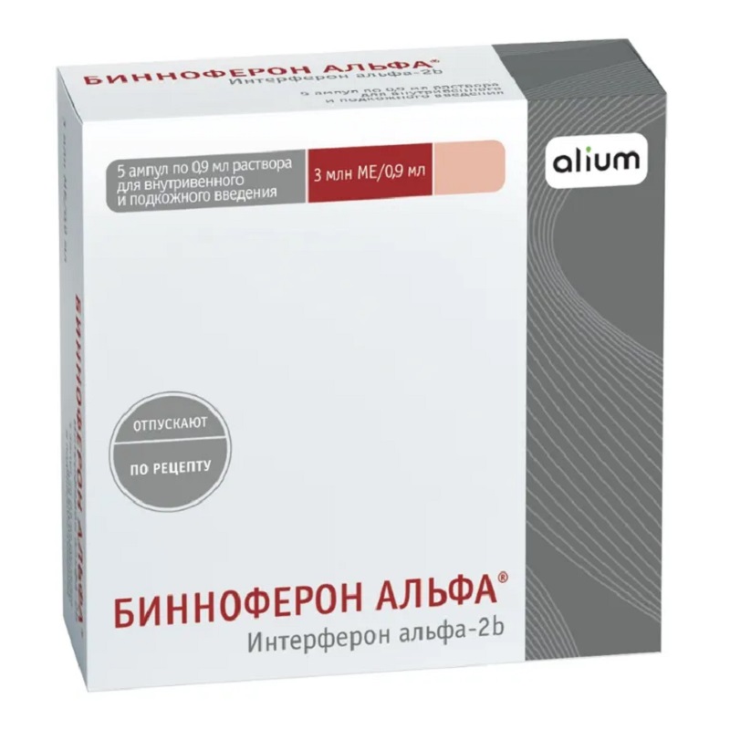 Бинноферон Альфа 3 млн МЕ/0,9 мл раствор для внутривенного и подкожного введения ампула 5 шт
