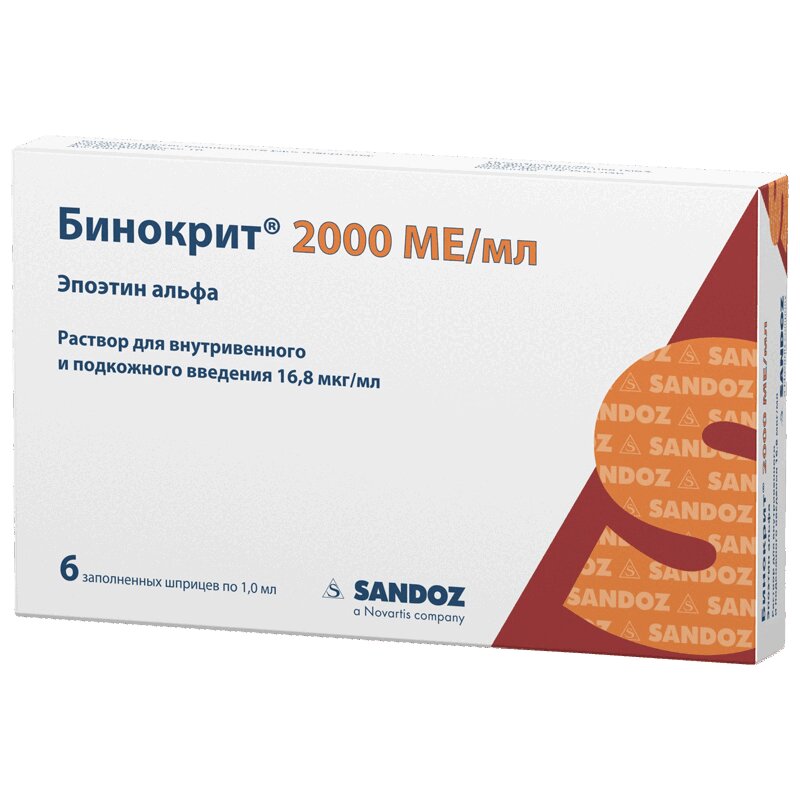 Бинокрит 2000 МЕ/мл раствор для внутривенного и подкожного введения шприц 1 мл 6 шт