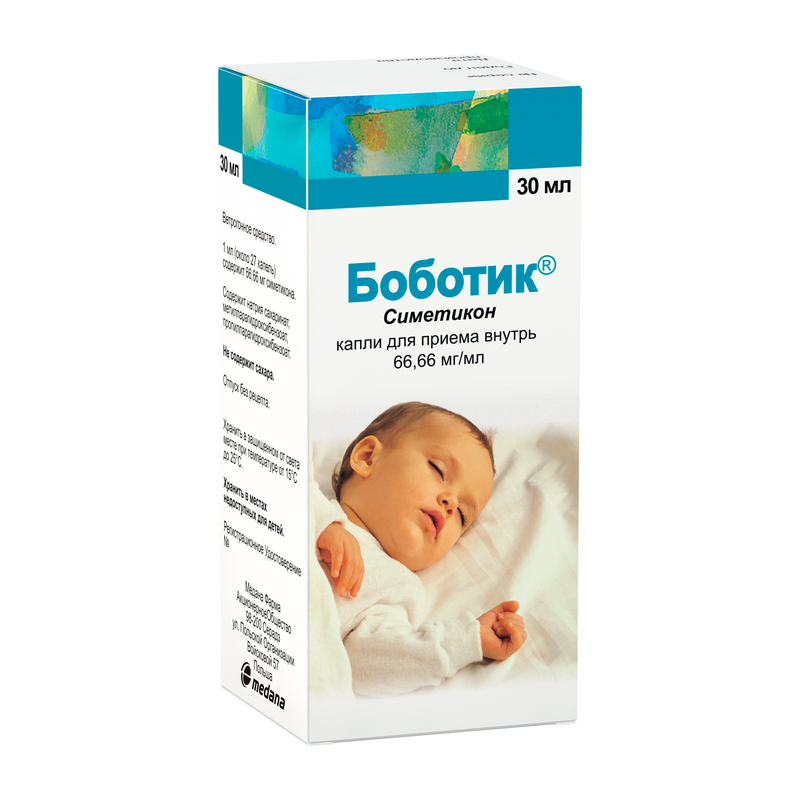 Препарат, уменьшающий метеоризм. Симетикон (активированный диметикон) представляет собой комбинацию метилированных линейных силоксановых полимеров, стабилизованных триметилсилоксиловыми группами с кремния диоксидом. Снижая поверхностное натяжение на границе раздела фаз, затрудняет образование и способствует разрушению газовых пузырьков в содержимом кишечника и слизи ЖКТ. Высвобождаемые при этом газы могут поглощаться стенками кишечника или выводиться благодаря перистальтике. Это предупреждает образование больших газово-слизистых конгломератов, вызывающих болезненное вздутие живота.