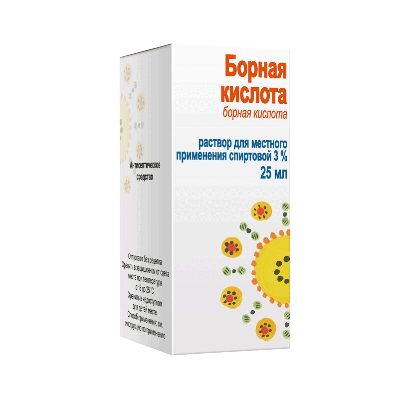 Инструкция по применению Борная кислота 3% раствор для местного применения спиртовой 25 мл